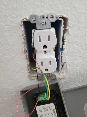 - Finally screw the receptacle in place, and then JRV Wallplate. Reconnect your power breaker and test your connections by checking the voltage output of the receptacle. You should expect the display always on, showing 0's and the current temp if nothing is connected.